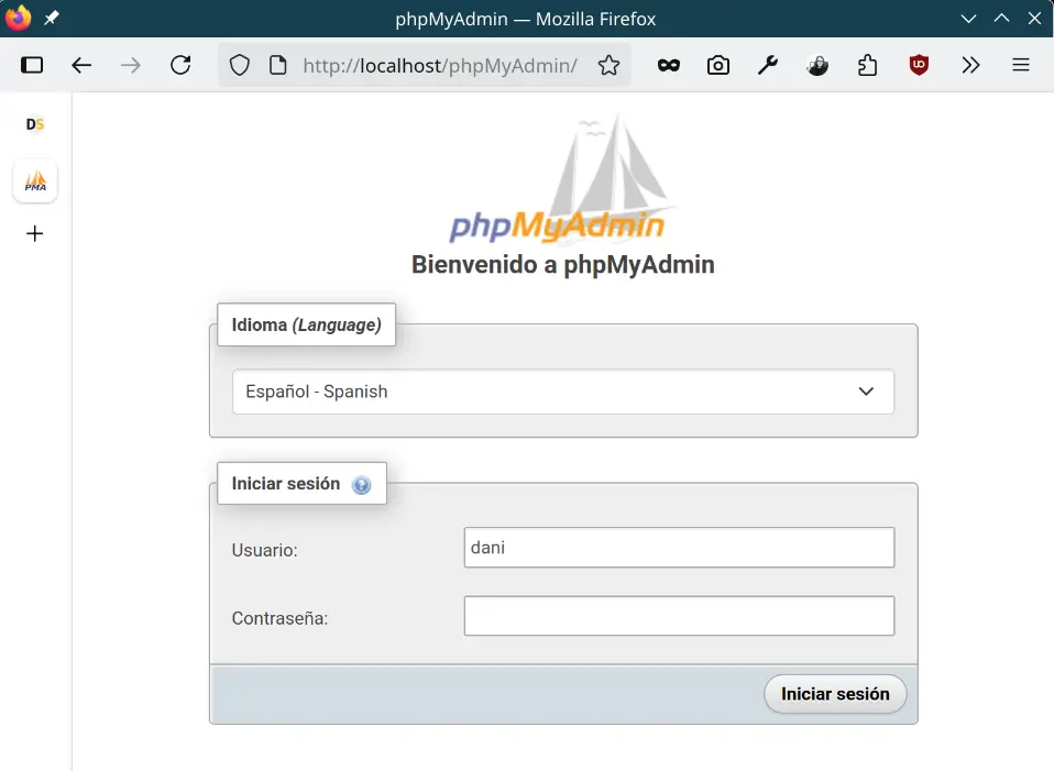 Para abrirlo accedemos desde el navegador a la ruta: http://localhost/phpMyAdmin