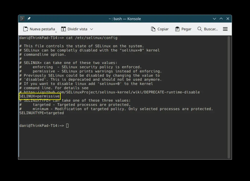 Por último, si trabajas con WordPress o similares y tienes problemas de conexión (por ejemplo, no descarga ni instala plugins), puedes cambiar el nivel de protección de SELinux de estricto a permisivo: